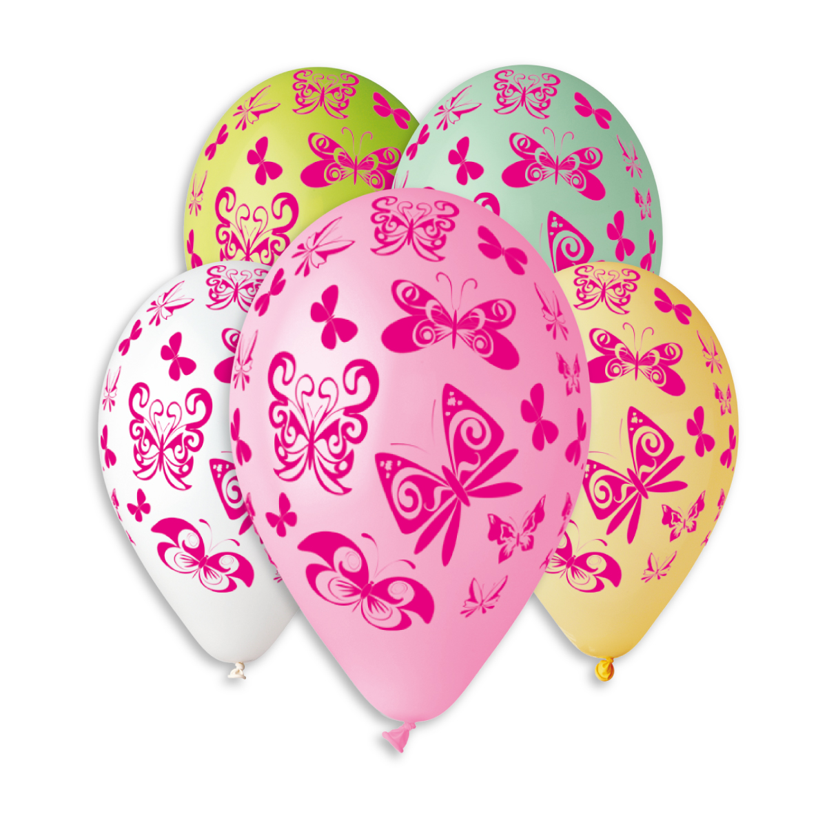 GS110-106-80 | Balloons 30cm/12" Pastel print Butterflies (100pcs) |