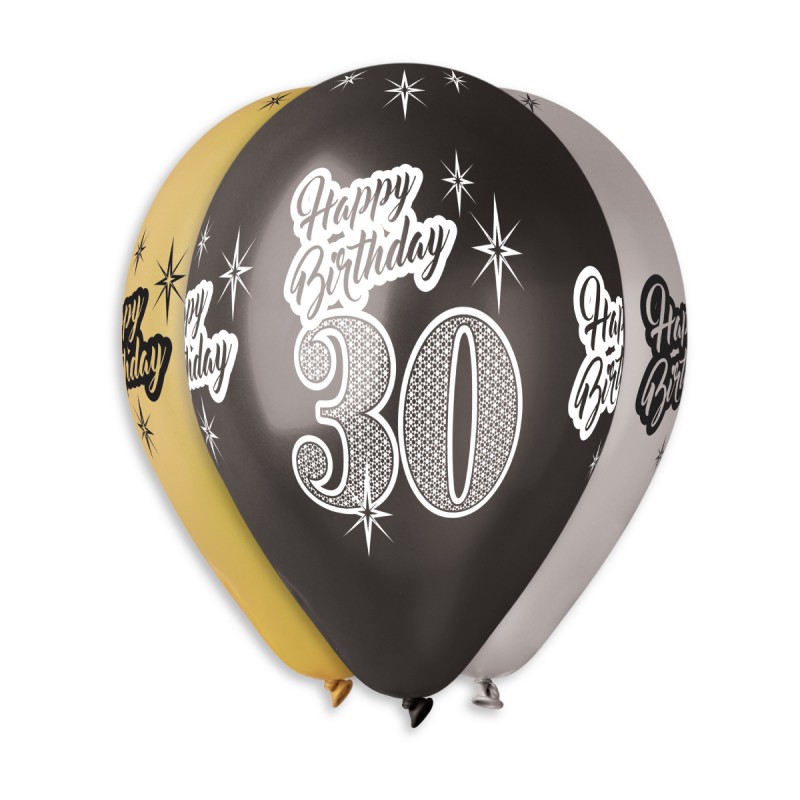 GMS120-455-82 | Balloons 30cm/12" Metallic print number "30" (100pcs) |