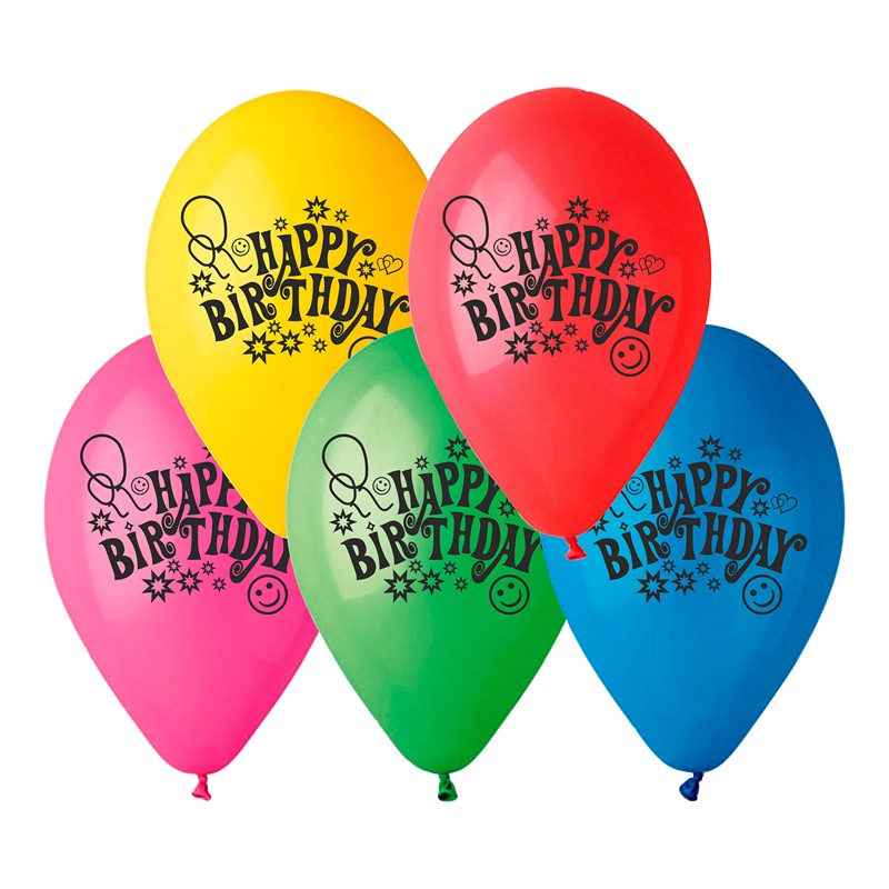GP90-HB | Balloons 26cm/10" #080 Classic Assorted, print - Happy Birthday! (100pcs) |