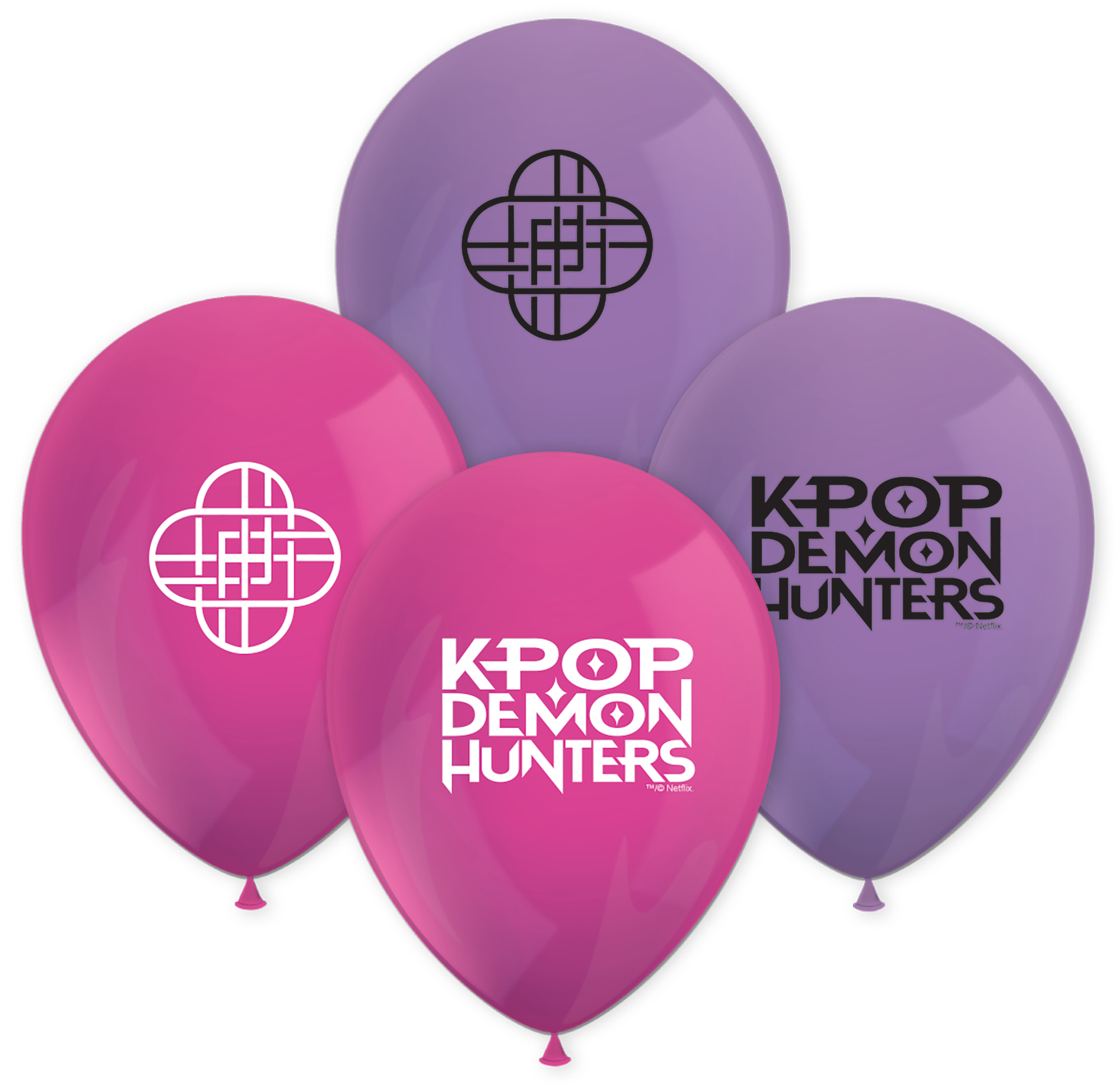 Latex balloons with a print of the K-Pop Demon Hunters motif. The package contains 8 pieces.