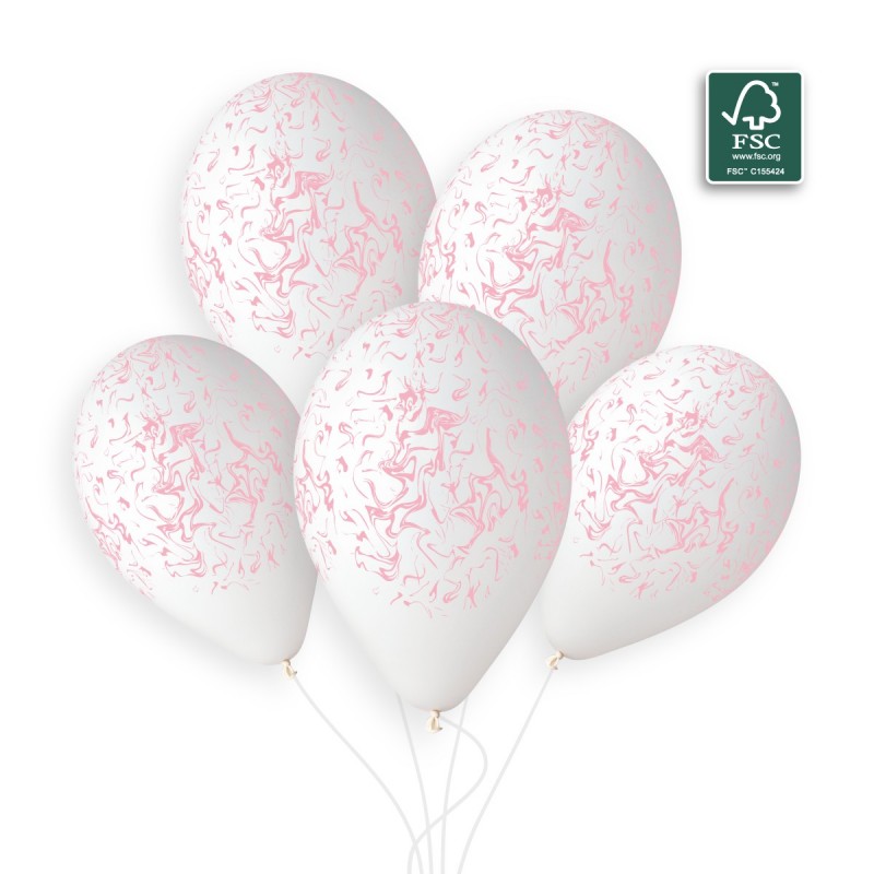 50 pcs of white balloons with a pink marble print with a diameter of 33cm.