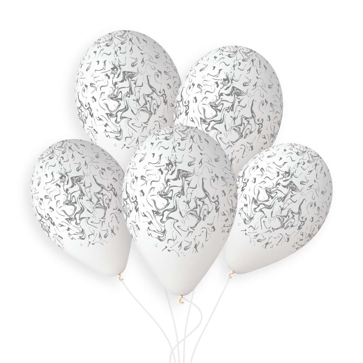 50 pcs of white balloons with silver marble print, diameter 33cm.
