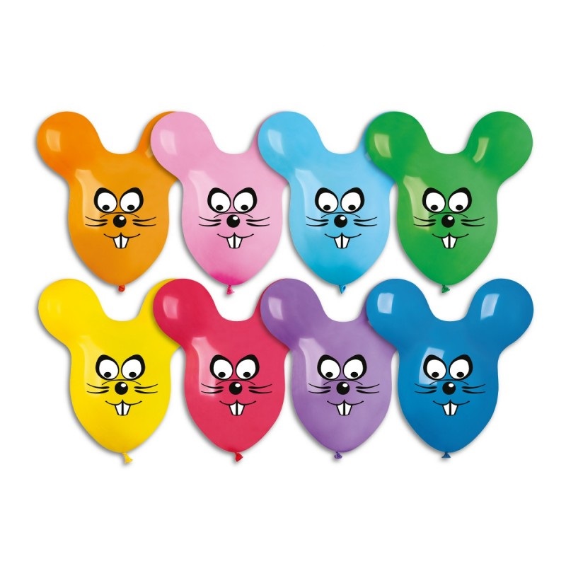 Balloon inflatable mouse with a face, a mix of pastel colors with 100 pcs in a package.