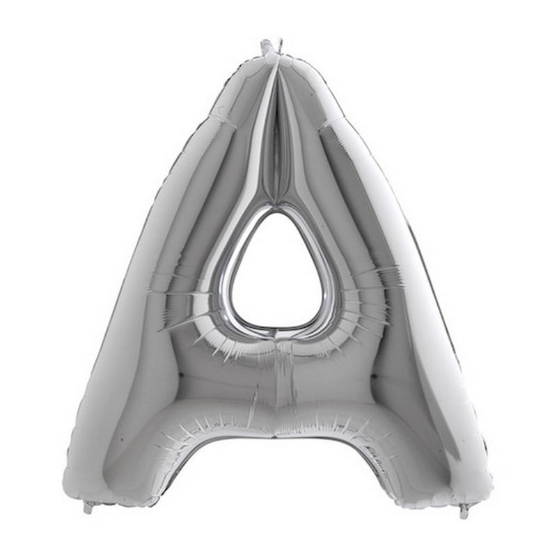 Foil balloon in shape of letter A in silver color. Balloons are in single pack.