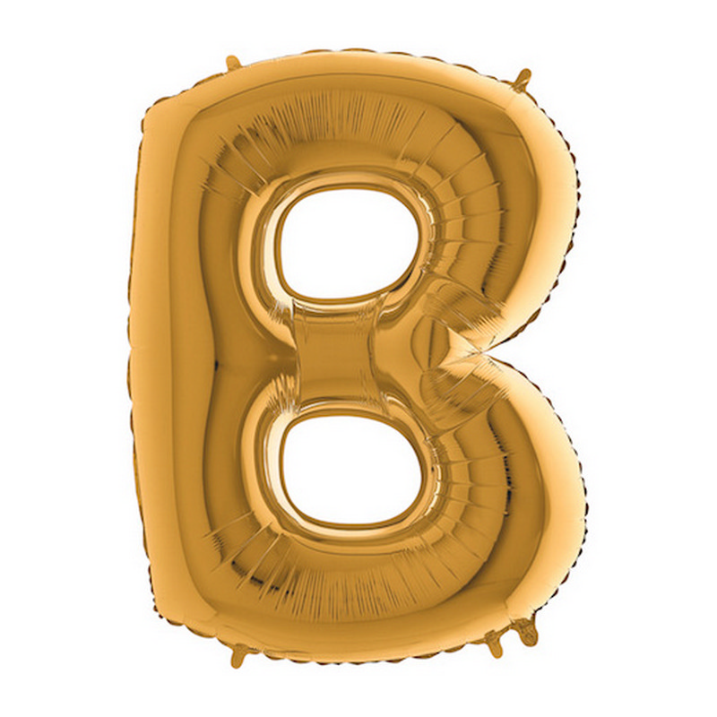 Foil balloon in shape of letter B in gold color. Balloons are in single pack.