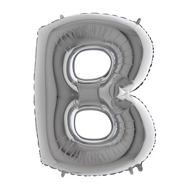 Foil balloon in shape of letter B in silver color. Balloons are in single pack.