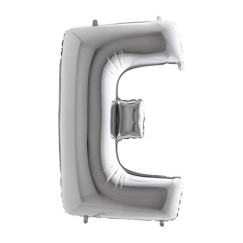 Foil balloon in shape of letter E in silver color. Balloons are in single pack.