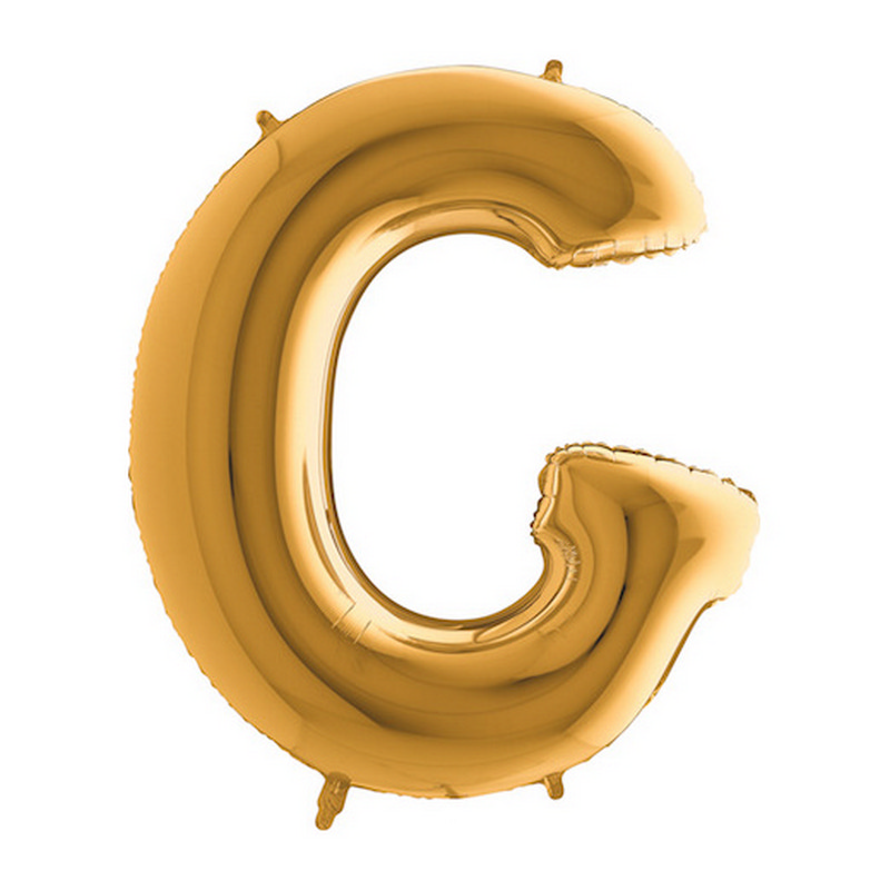 Foil balloon in shape of letter G in gold color. Balloons are in single pack.