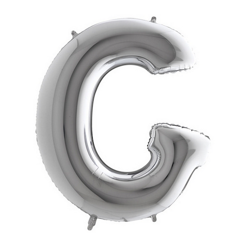 Foil balloon in shape of letter G in silver color. Balloons are in single pack.