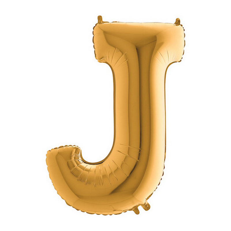 Foil balloon in shape of letter J in gold color. Balloons are in single pack.