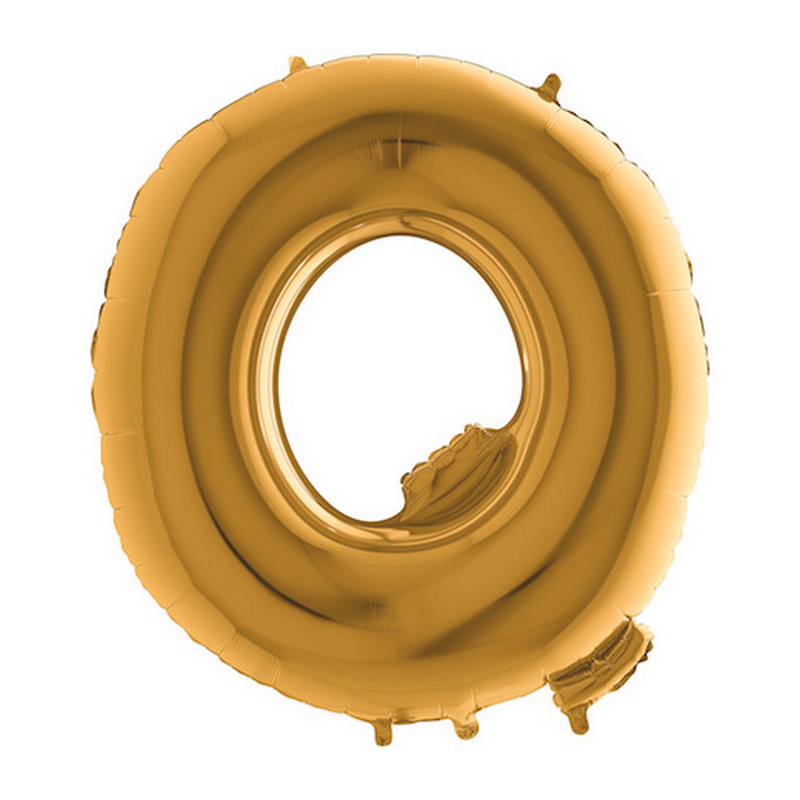 Foil balloon in shape of letter Q in gold color. Balloons are in single pack.