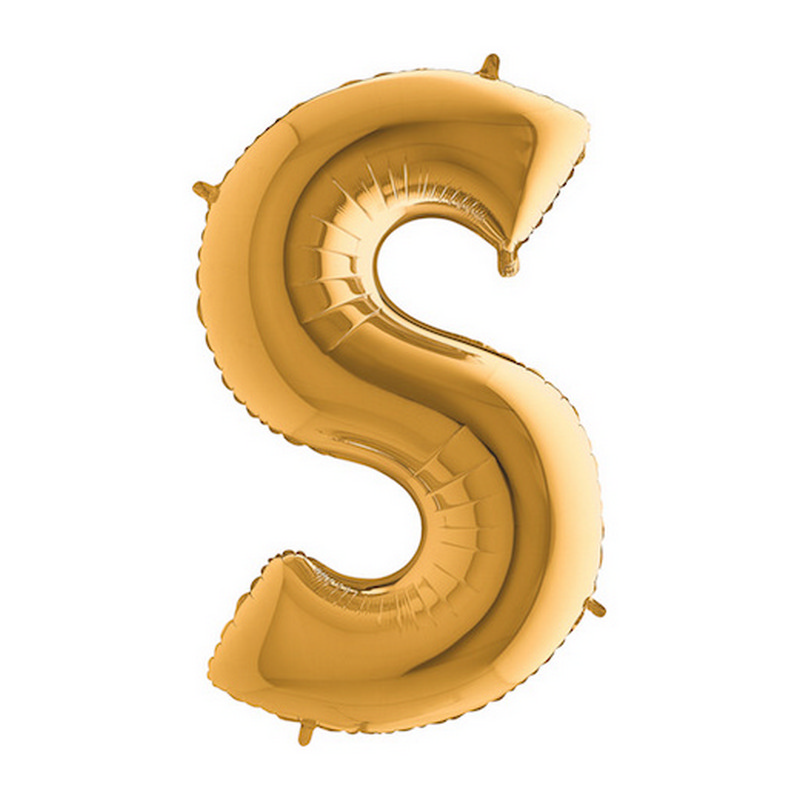 Foil balloon in shape of letter S in gold color. Balloons are in single pack.