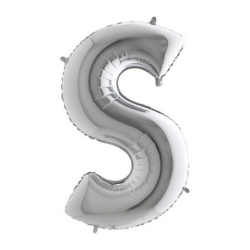 Foil balloon in shape of letter S in silver color. Balloons are in single pack.