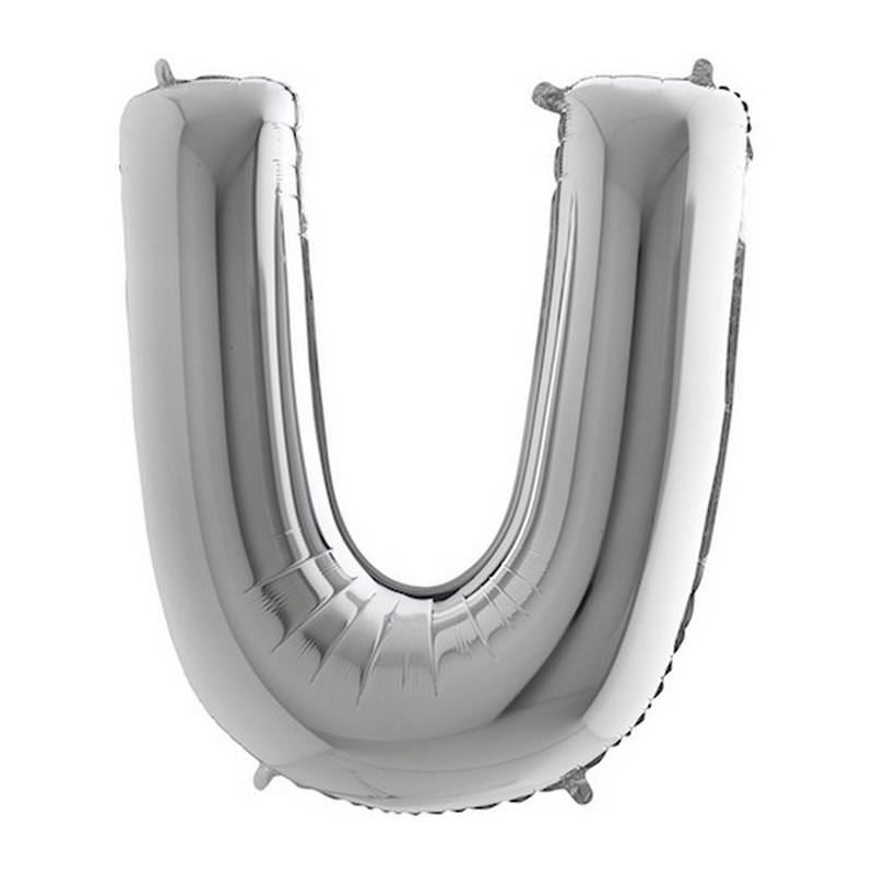 Foil balloon in shape of letter U in silver color. Balloons are in single pack.