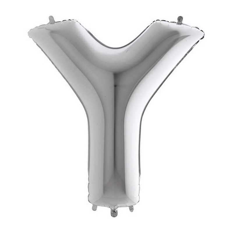 Foil balloon in shape of letter Y in silver color. Balloons are in single pack.