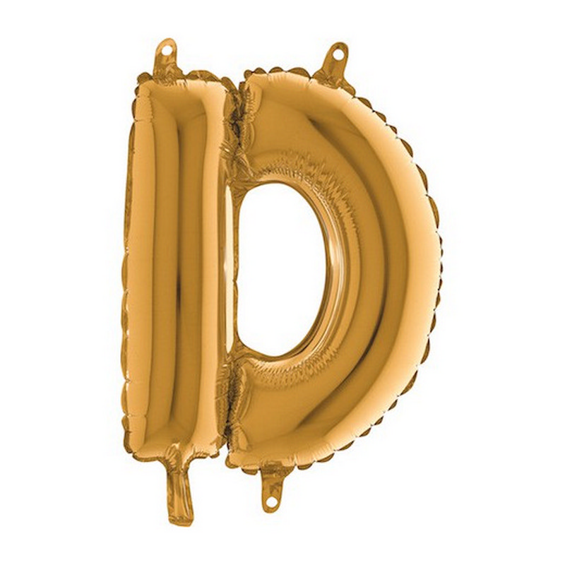 Foil balloon in shape of letter D in gold color. Balloons are in single pack.