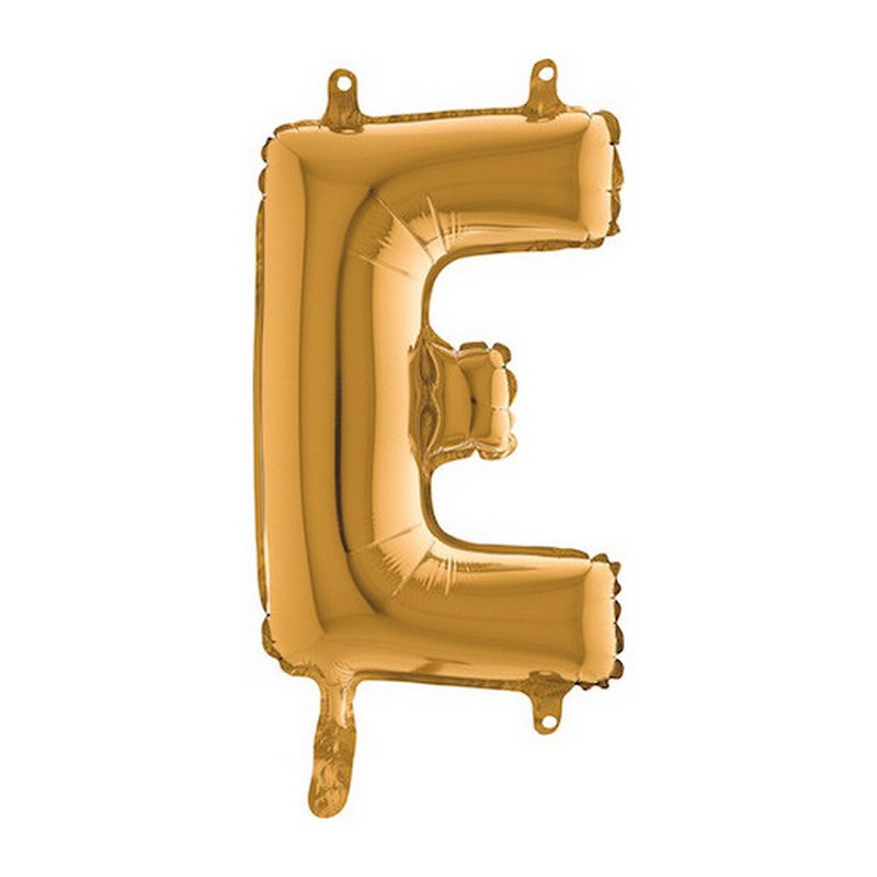 Foil balloon in shape of letter E in gold color. Balloons are in single pack.