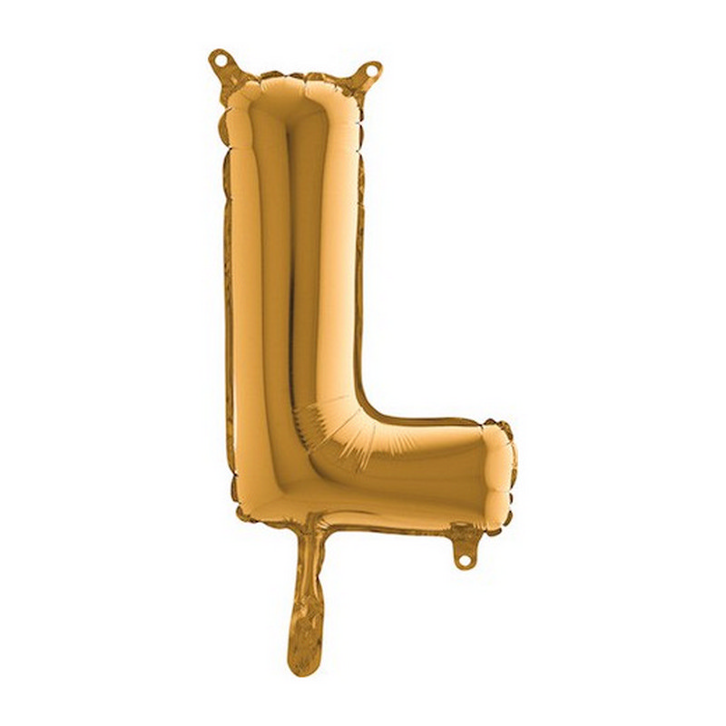 Foil balloon in shape of letter L in gold color. Balloons are in single pack.