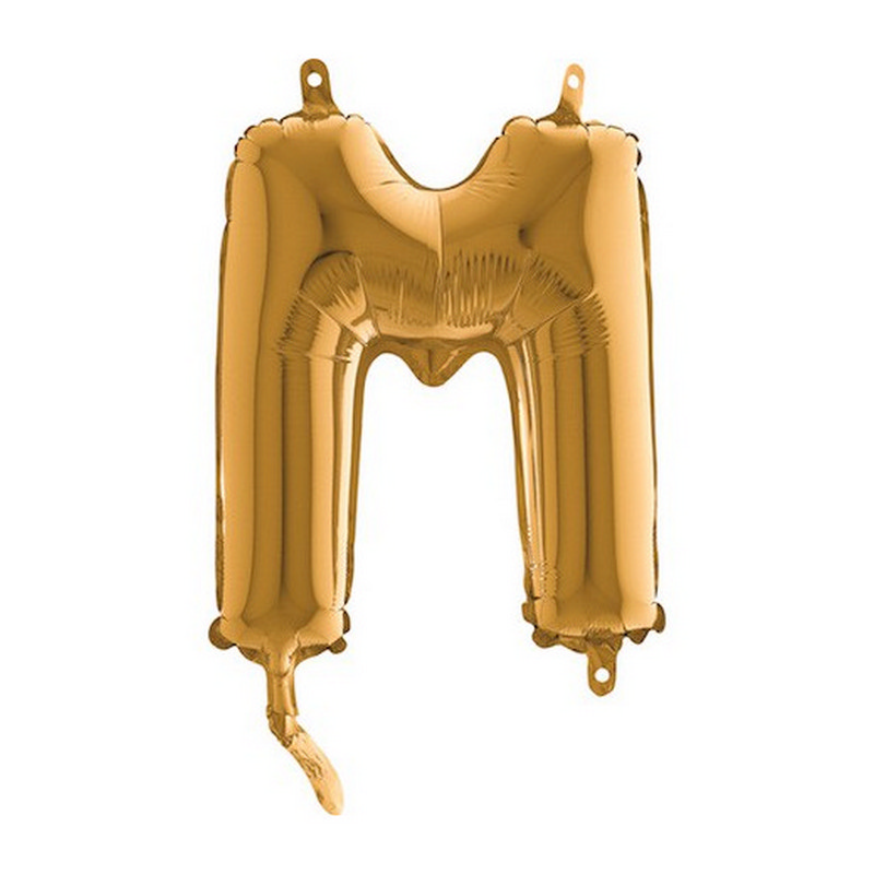 Foil balloon in shape of letter M in gold color. Balloons are in single pack.