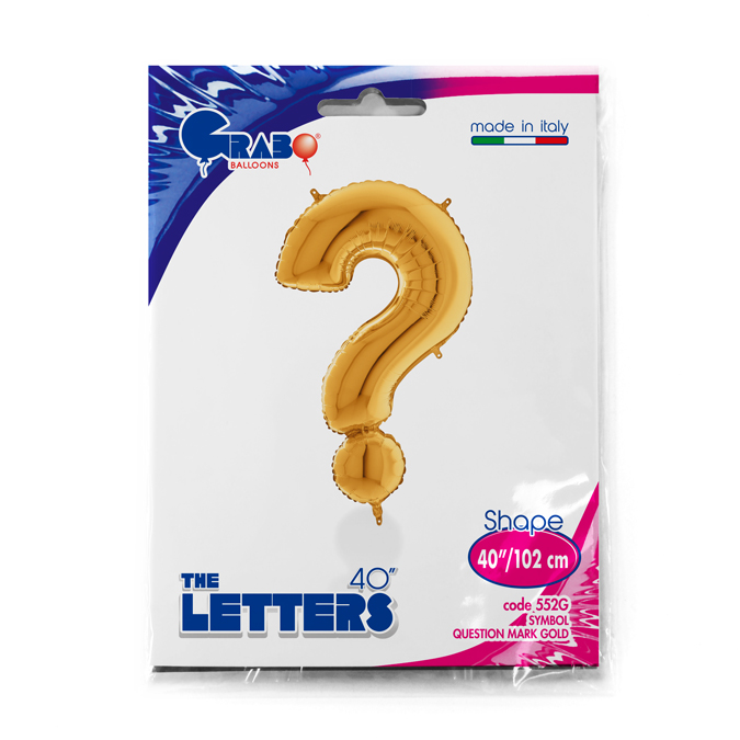 Foil balloon in shape of ? in gold color. Balloons are in single pack.