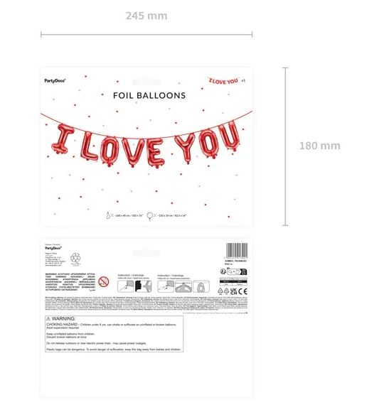Foil balloon in the shape of the inscription I Love You, size approx. 260x40cm.
