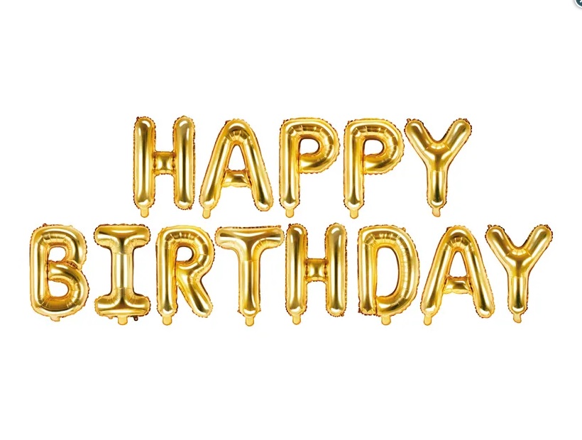 Set of foil balloons, inscription HAPPY BIRTHDAY.