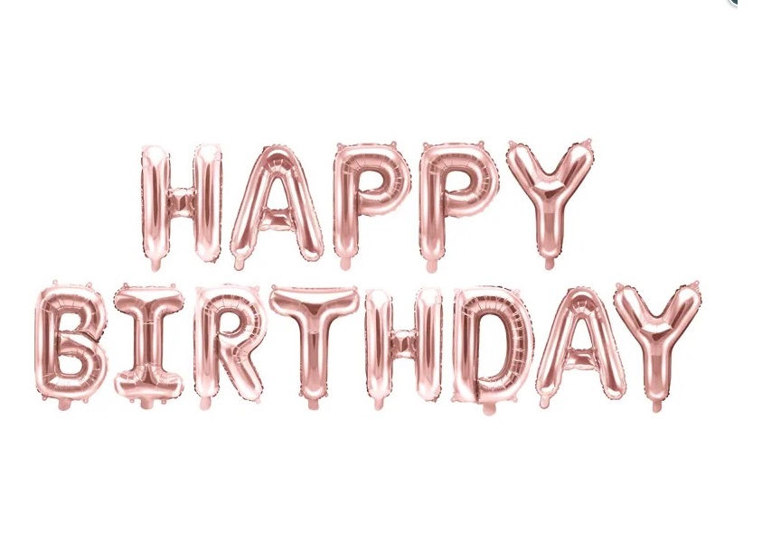 Set of foil balloons, inscription HAPPY BIRTHDAY.