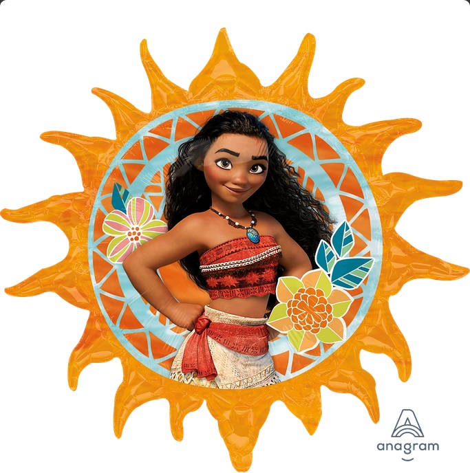 Foil balloon in the shape of a mirror with Moana motif.