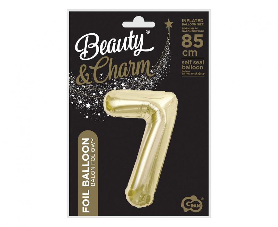 Foil balloon in the shape of a number in a modern champagne color design.