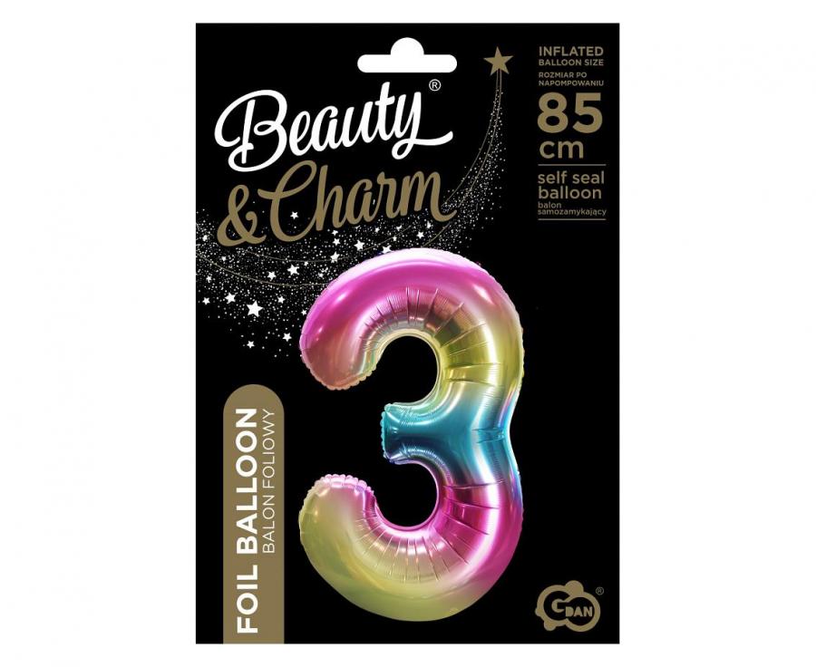 Foil balloon in the shape of a number in a modern design in a rainbow color.