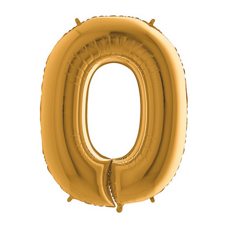 Foil balloon in shape of number 0 in gold color. Balloons are in single pack.