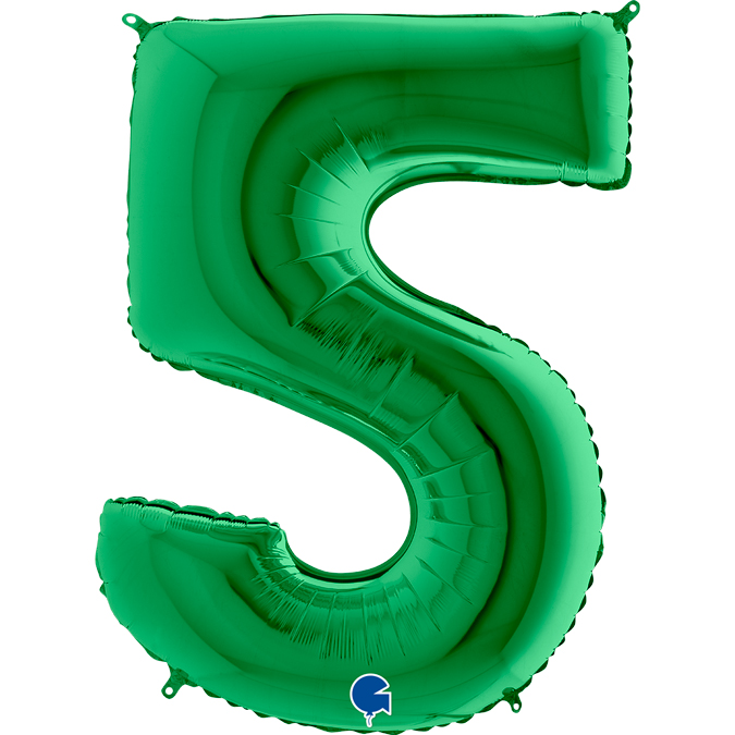 Foil balloon in shape of number 5 in green color. Balloons are in single pack.