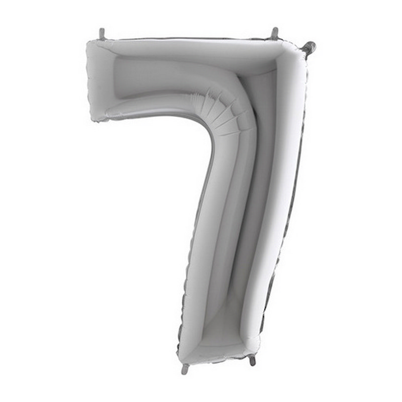 Foil balloon in shape of number 7 in silver color. Balloons are in single pack.