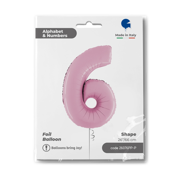 Number 6 pastel Pink (66cm,26") foil balloon - 26076PP-P-Packaged-1.jpg