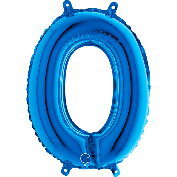 Foil balloon in the shape of the number 0 in blue.