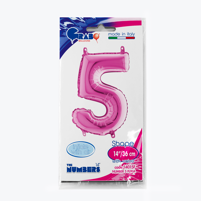 Foil balloon in the shape of the number 5 in fuchsia color.