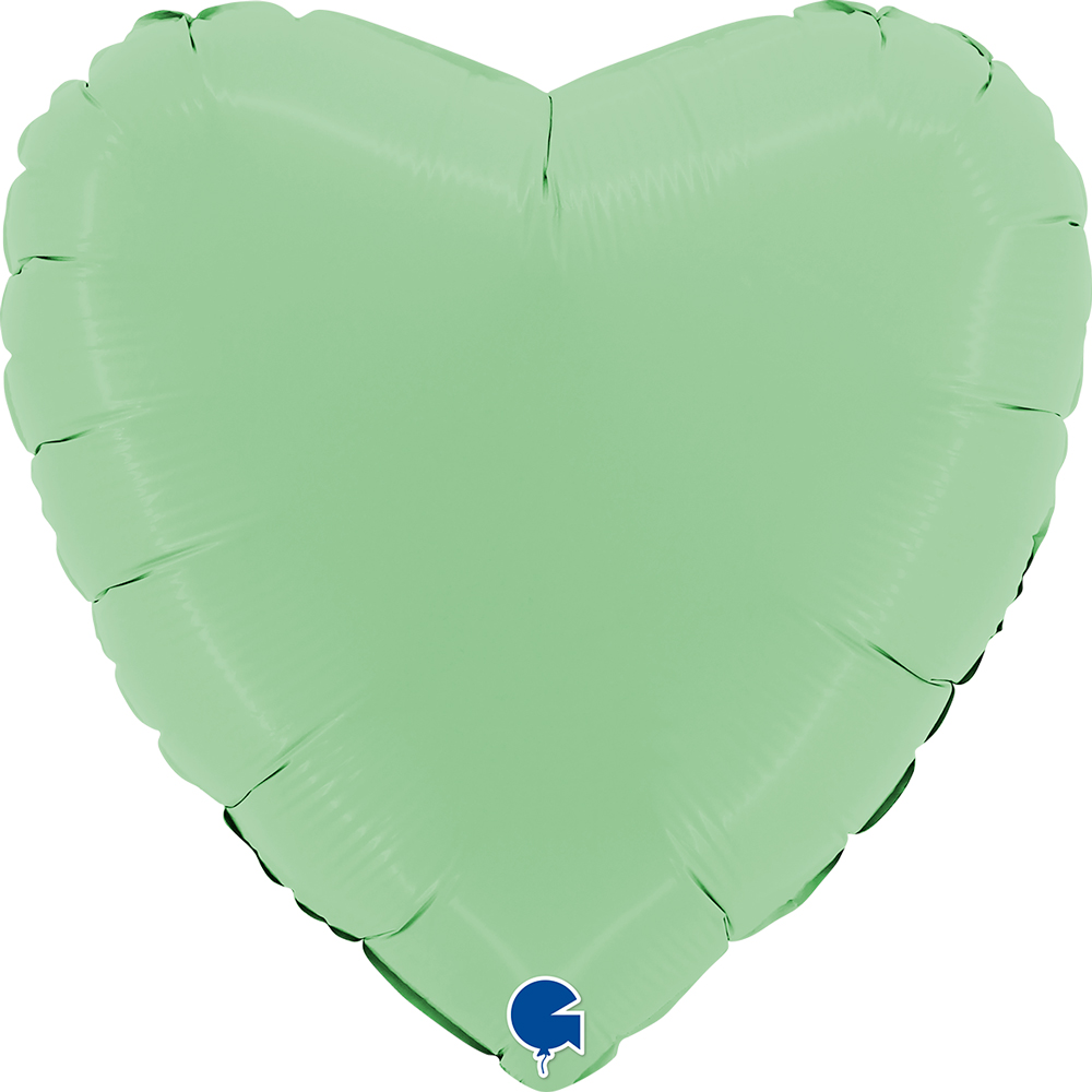 Foil balloon in light matte green color in the shape of a heart, height 46cm.