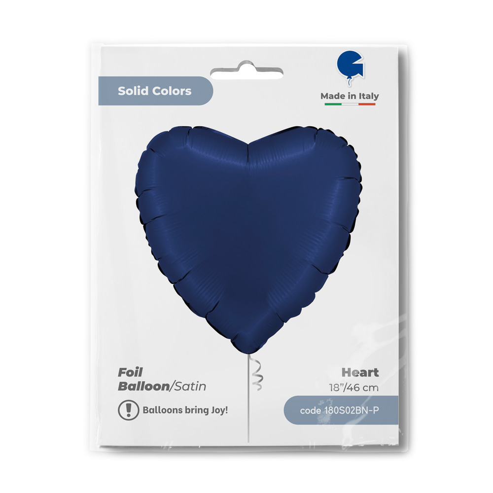 Navy blue foil balloon in the shape of a heart, height 46cm.