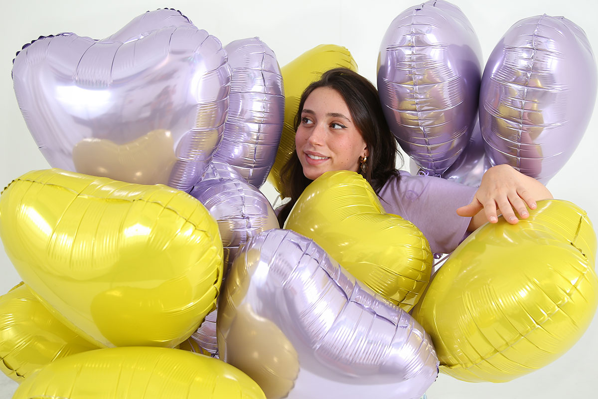 Foil balloon in yellow color in the shape of a heart, height 46 cm.