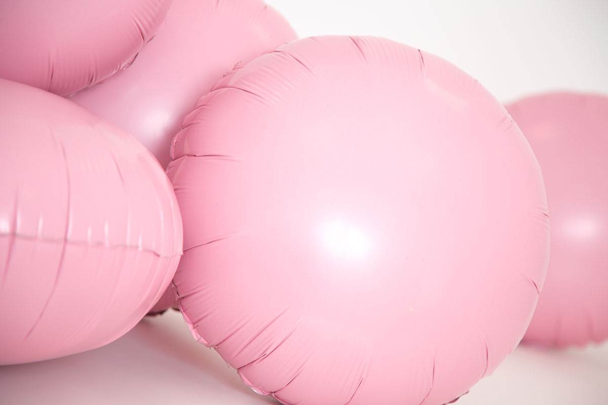 Foil balloon in matte pink color in the shape of a circle, height 46 cm.