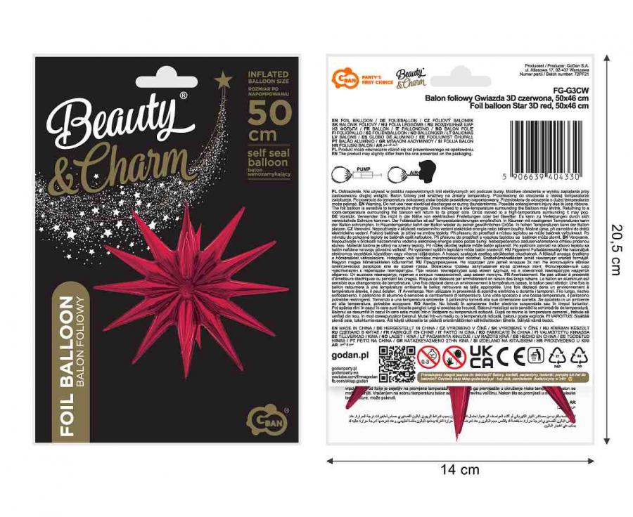 Deschberouc 3D star size 50x46cm. The balloon is suitable for air inflation.