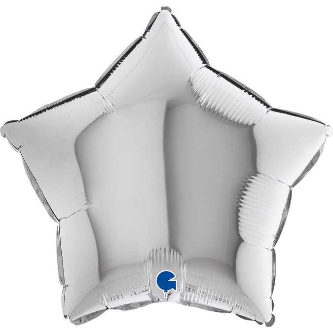 Foil balloon in silver in the shape of a star, height 46cm.