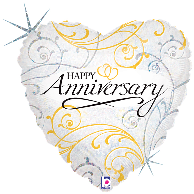 Heart-shaped foil balloon with the words Happy Anniversary.
