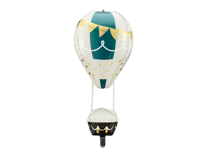 Foil balloon in the shape of a 4D hot air balloon, size approx. 36 x 110 cm before inflation.