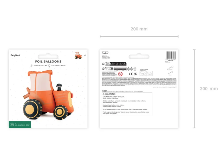 Foil balloon in the shape of a tractor, size approx. 72x63.5cm.