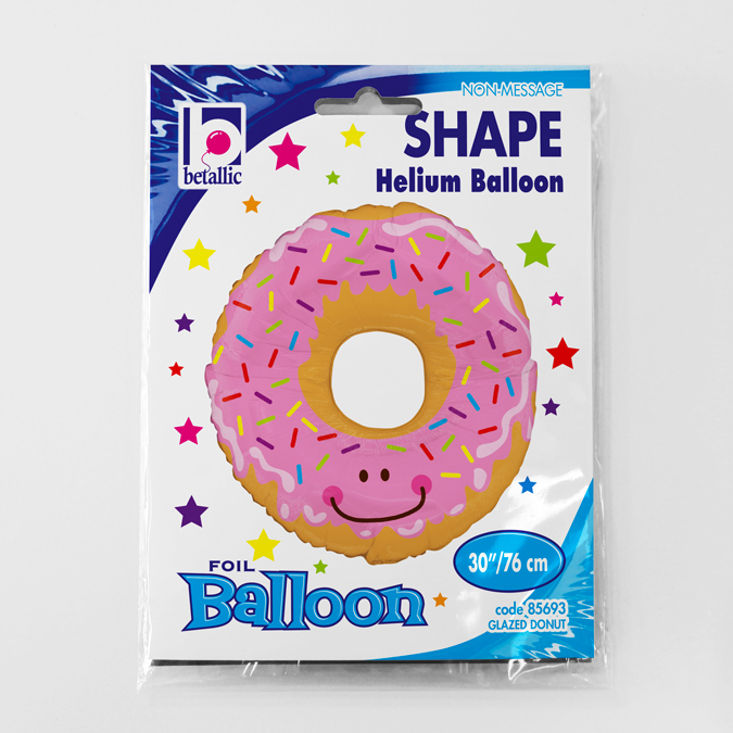 Donut-shaped foil balloon.