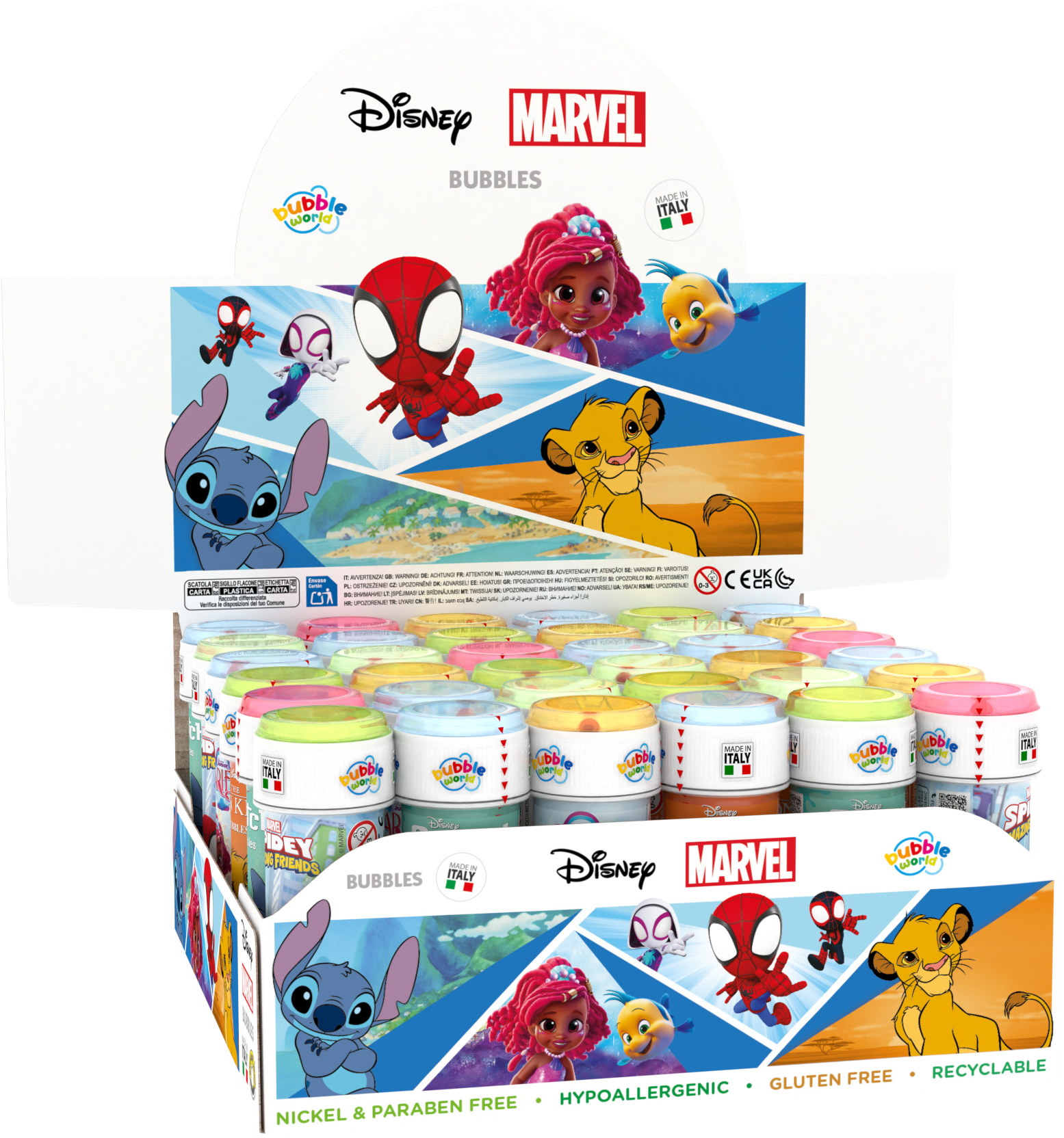 60ml bubbles with Disney motifs and Marvel movies.