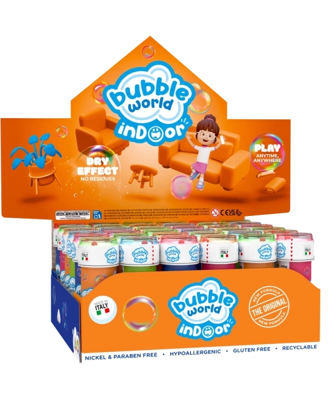 60ml Indoor bubble blowers are special bubble blowers designed for safe use indoors (e.g. in the living room), because they do not leave stains and have a "dry effect".