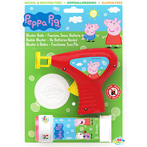 The Peppa Pig themed package includes a 60ml bubble gun, a bubble gun and a container for bubble liquid.