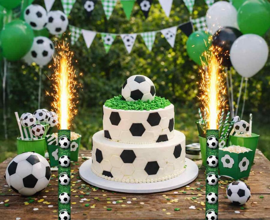 Football-themed cake fountain perfectly replaces ordinary candles.